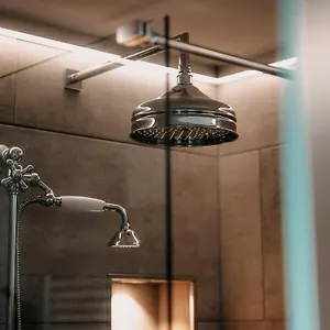 Es hat eine komplette Küche und ein Badezimmer mit einer begehbaren Dusche und einer Sauna.